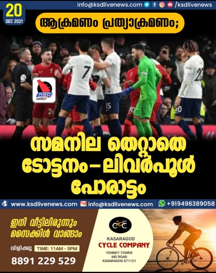 ആക്രമണം പ്രത്യാക്രമണം; സമനില തെറ്റാതെ ടോട്ടനം – ലിവര്പൂള് പോരാട്ടം