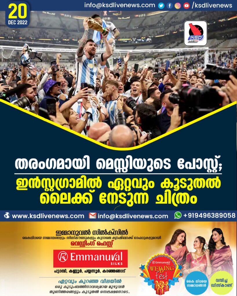 തരംഗമായി മെസ്സിയുടെ പോസ്റ്റ്; ഇന്സ്റ്റഗ്രാമില് ഏറ്റവും കൂടുതല് ലൈക്ക് നേടുന്ന ചിത്രം