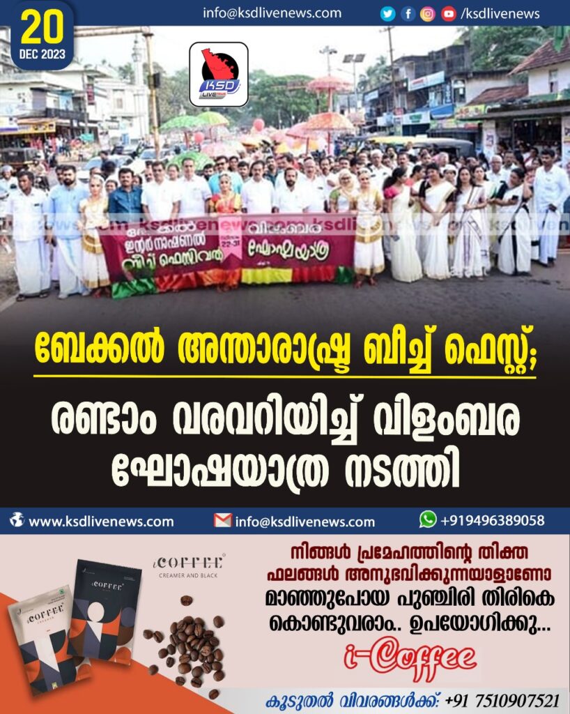 ബേക്കല് അന്താരാഷ്ട്ര ബീച്ച് ഫെസ്റ്റ്; രണ്ടാം വരവറിയിച്ച് വിളംബര ഘോഷയാത്ര നടത്തി