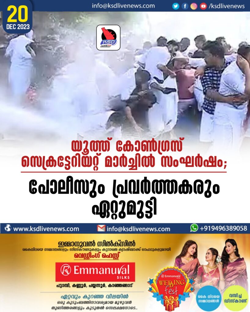 യൂത്ത് കോണ്ഗ്രസ് സെക്രട്ടേറിയറ്റ് മാര്ച്ചില് സംഘര്ഷം; പോലീസും പ്രവര്ത്തകരും ഏറ്റുമുട്ടി