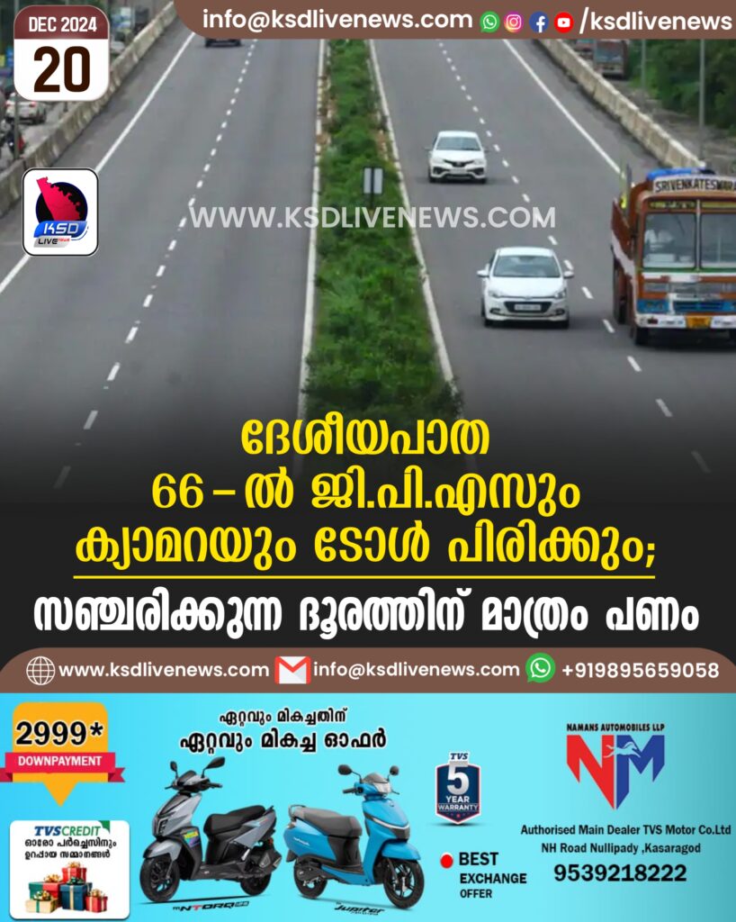 ദേശീയപാത 66-ൽ ജി.പി.എസും ക്യാമറയും ടോൾ പിരിക്കും; സഞ്ചരിക്കുന്ന ദൂരത്തിന് മാത്രം പണം