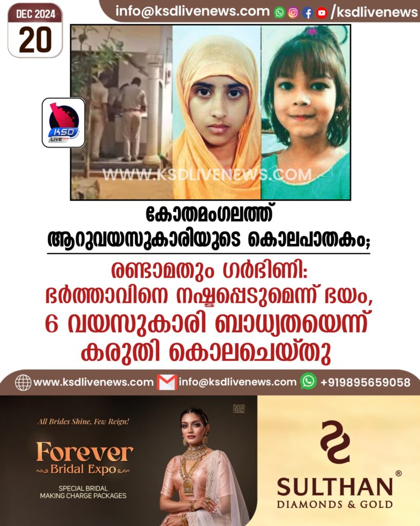 കോതമംഗലത്ത് ആറുവയസുകാരിയുടെ കൊലപാതകം; രണ്ടാമതും ഗർഭിണി: ഭർത്താവിനെ നഷ്ടപ്പെടുമെന്ന് ഭയം, 6 വയസുകാരി ബാധ്യതയെന്ന് കരുതി കൊലചെയ്തു