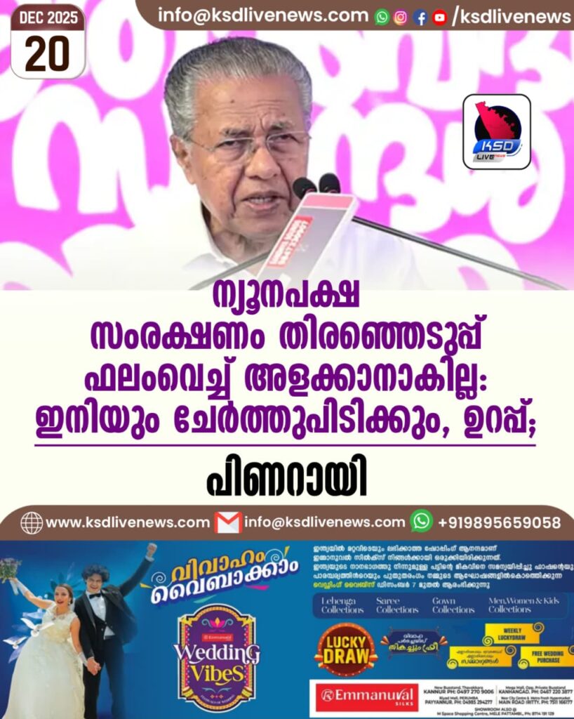 ന്യൂനപക്ഷ സംരക്ഷണം തിരഞ്ഞെടുപ്പ് ഫലംവെച്ച് അളക്കാനാകില്ല: ഇനിയും ചേർത്തുപിടിക്കും, ഉറപ്പ്; പിണറായി