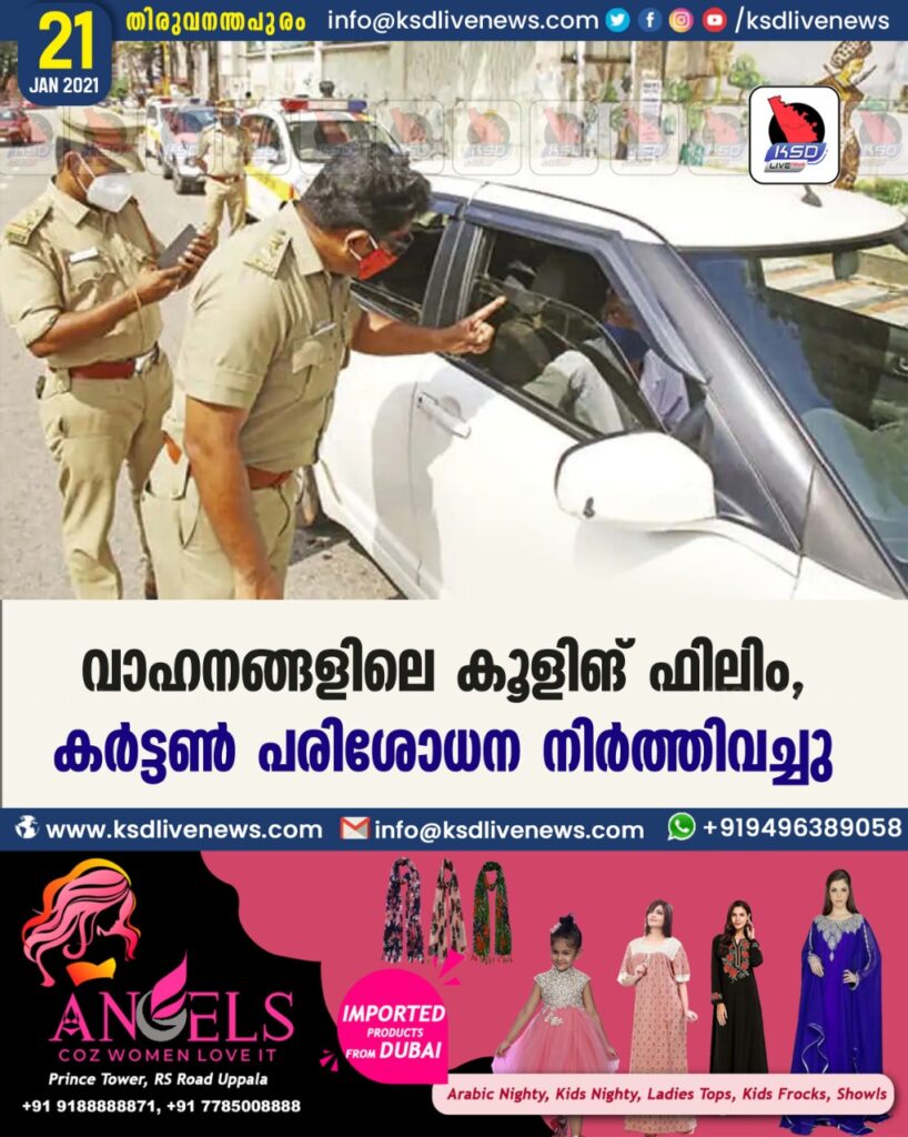 വാഹനങ്ങളിലെ കൂളിങ് ഫിലിം, കര്ട്ടണ് പരിശോധന നിര്ത്തിവച്ചു