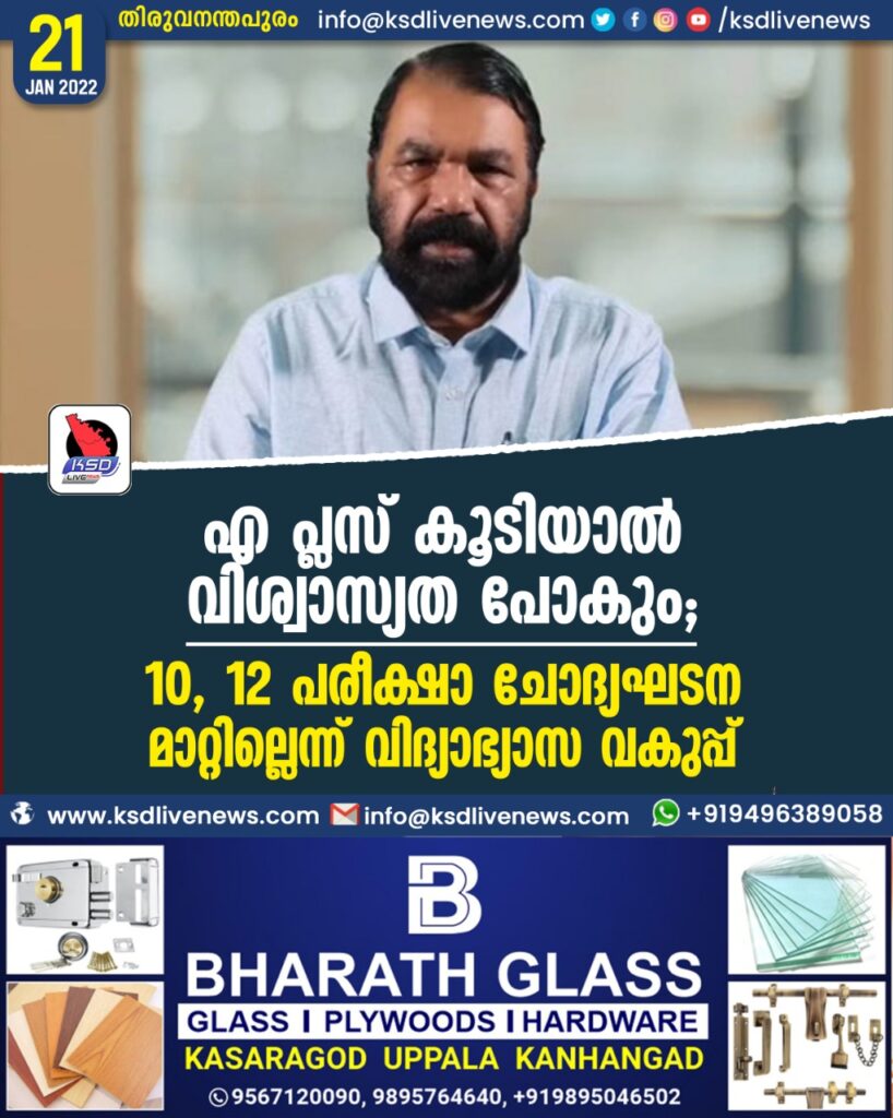 എ പ്ലസ് കൂടിയാൽ വിശ്വാസ്യത പോകും, 10, 12 പരീക്ഷാ ചോദ്യഘടന മാറ്റില്ലെന്ന് വിദ്യാഭ്യാസ വകുപ്പ്