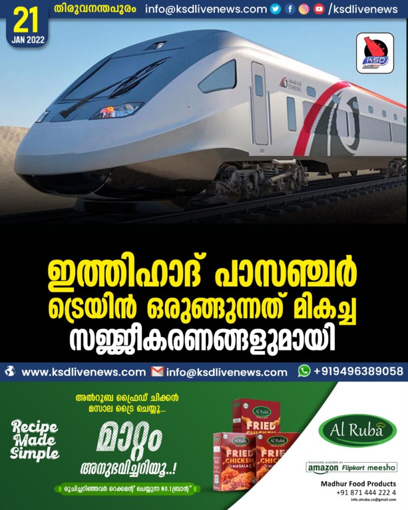 ഇത്തിഹാദ് പാസഞ്ചര്‍ ട്രെയിന്‍ ഒരുങ്ങുന്നത് മികച്ച സജ്ജീകരണങ്ങളുമായി