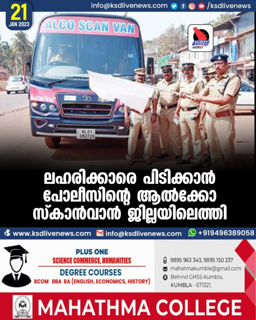 ലഹരിക്കാരെ പിടിക്കാൻ പോലീസിന്റെ ആൽക്കോ സ്കാൻവാൻ ജില്ലയിലെത്തി