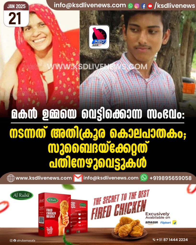 മകൻ ഉമ്മയെ വെട്ടിക്കൊന്ന സംഭവം: നടന്നത് അതിക്രൂര കൊലപാതകം, സുബൈദയ്ക്കേറ്റത് പതിനേഴുവെട്ടുകൾ