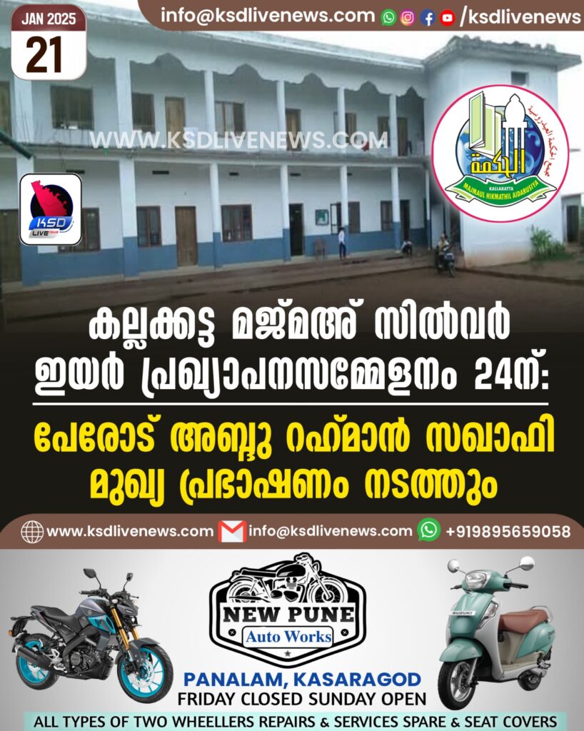 കല്ലക്കട്ട മജ്മഅ് സിൽവർ ഇയർ പ്രഖ്യാപനസമ്മേളനം 24ന്: പേരോട് അബ്ദു റഹ്മാൻ സഖാഫി മുഖ്യ പ്രഭാഷണം നടത്തും