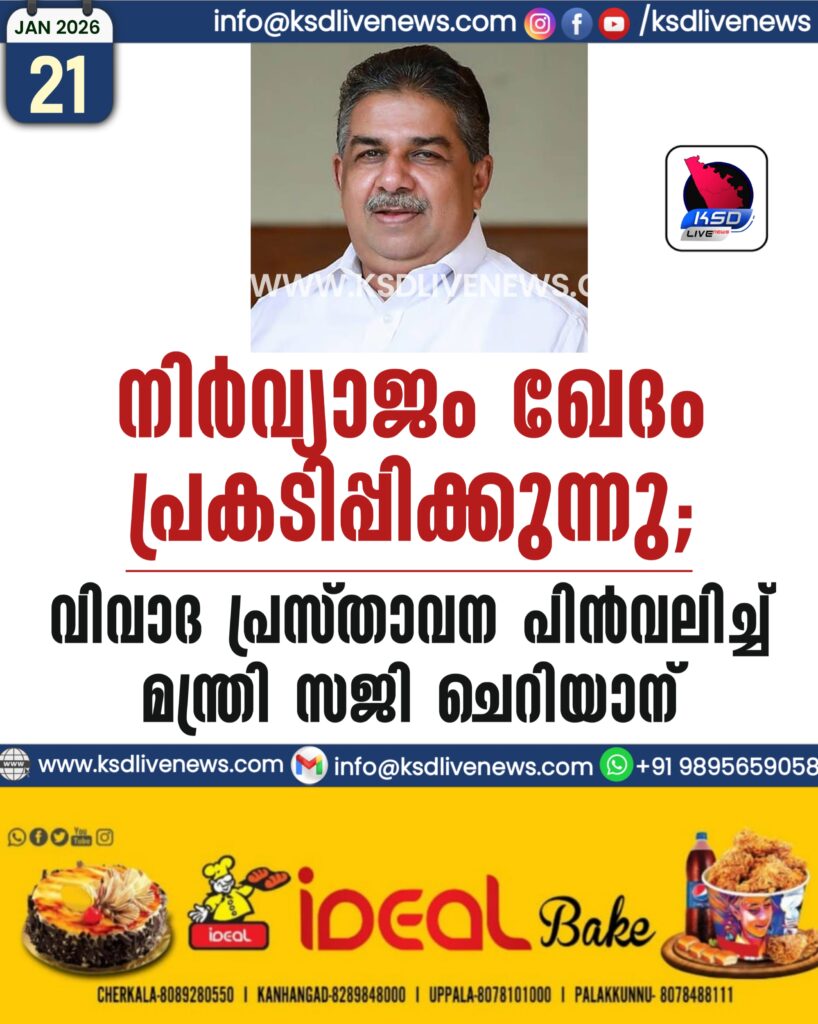 നിര്വ്യാജം ഖേദം പ്രകടിപ്പിക്കുന്നു’; വിവാദ പ്രസ്താവന പിന്വലിച്ച് മന്ത്രി സജി ചെറിയാന്