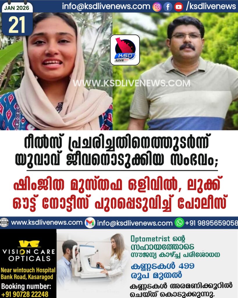 റീൽസ് പ്രചരിച്ചതിനെത്തുടർന്ന് യുവാവ് ജീവനൊടുക്കിയ സംഭവം: ഷിംജിത മുസ്തഫ ഒളിവിൽ? ലുക്ക് ഔട്ട് നോട്ടീസ് പുറപ്പെടുവിച്ച് പോലീസ്