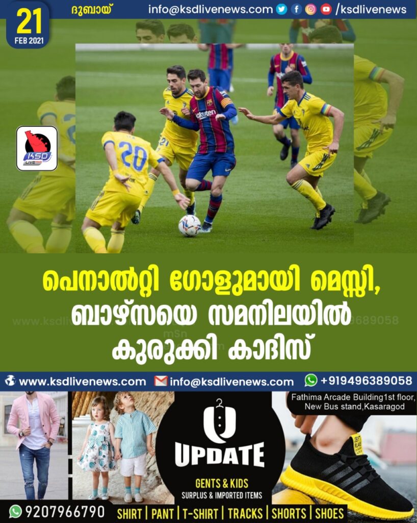 പെനാൽറ്റി ഗോളുമായി മെസ്സി, ബാഴ്സയെ സമനിലയിൽ കുരുക്കി കാദിസ്
