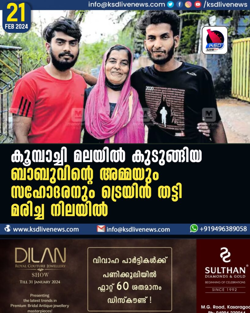 കൂമ്പാച്ചി മലയിൽ കുടുങ്ങിയ ബാബുവിന്റെ അമ്മയും സഹോദരനും ട്രെയിൻ തട്ടി മരിച്ച നിലയിൽ