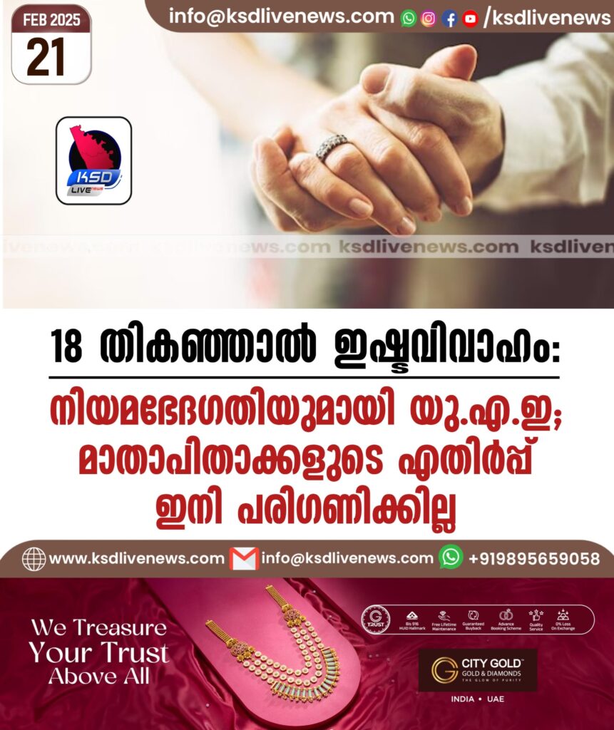 18 തികഞ്ഞാൽ ഇഷ്ടവിവാഹം; നിയമഭേദഗതിയുമായി യുഎഇ, മാതാപിതാക്കളുടെ എതിർപ്പ് ഇനി പരിഗണിക്കില്ല