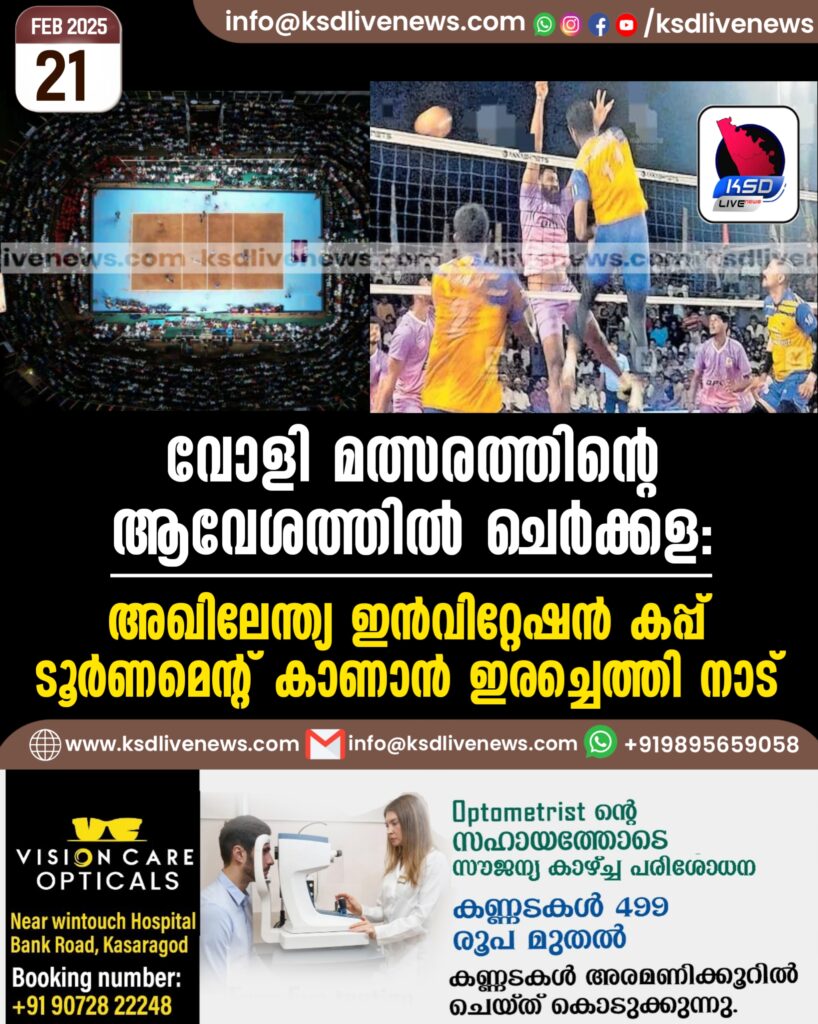 വോളി മത്സരത്തിന്റെ ആവേശത്തിൽ ചെർക്കള: അഖിലേന്ത്യ ഇൻവിറ്റേഷൻ കപ്പ് ടൂർണമെന്റ് കാണാൻ ഇരച്ചെത്തി നാട്