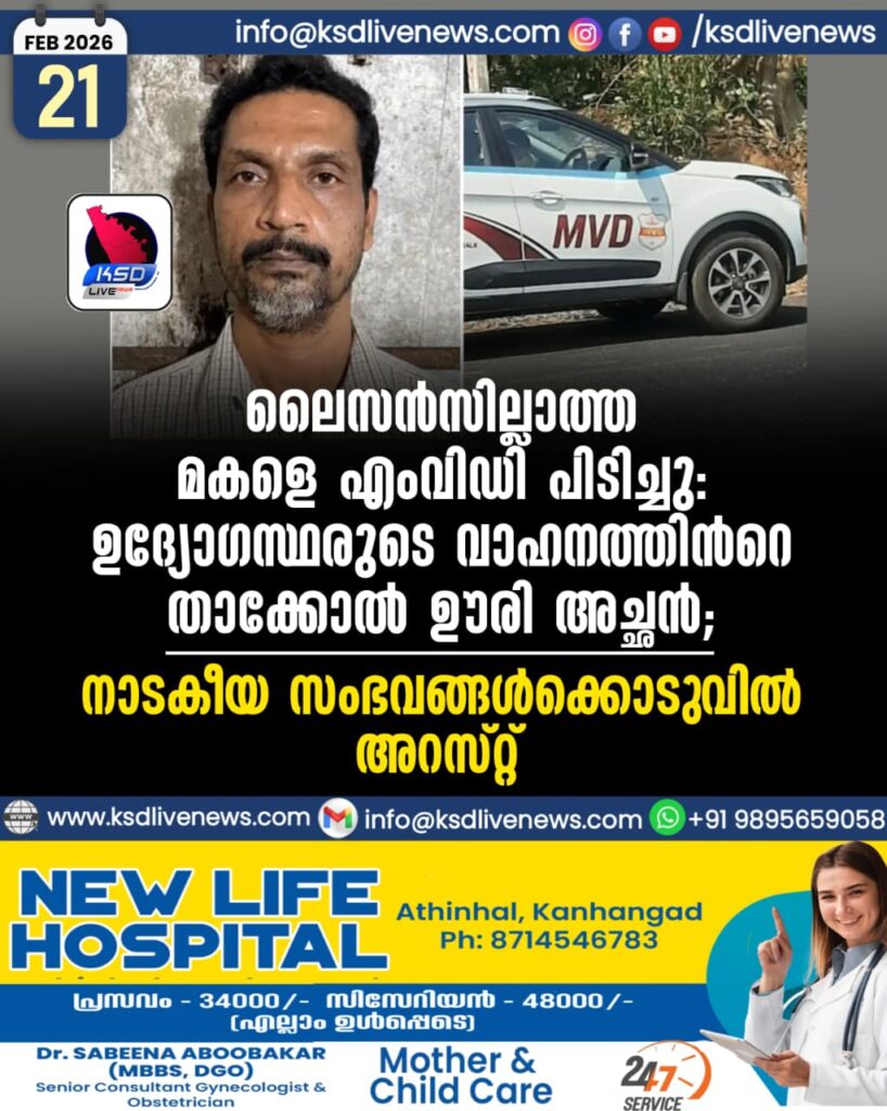 ലൈസൻസില്ലാത്ത മകളെ എംവിഡി പിടിച്ചു, ഉദ്യോഗസ്ഥരുടെ വാഹനത്തിന്‍റെ താക്കോല്‍ ഊരി അച്ഛൻ; നാടകീയ സംഭവങ്ങള്‍ക്കൊടുവില്‍ അറസ്റ്റ്
