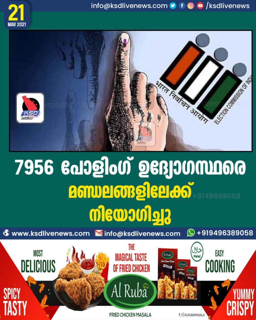 7956 പോളിംഗ് ഉദ്യോഗസ്ഥരെ മണ്ഡലങ്ങളിലേക്ക് നിയോഗിച്ചു