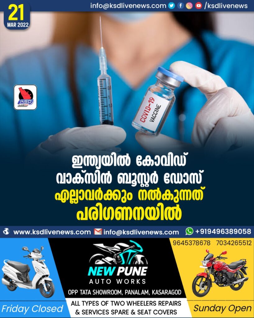 ഇന്ത്യയില് കോവിഡ് വാക്സിന് ബൂസ്റ്റര് ഡോസ് എല്ലാവര്ക്കും നല്കുന്നത് പരിഗണനയില്
