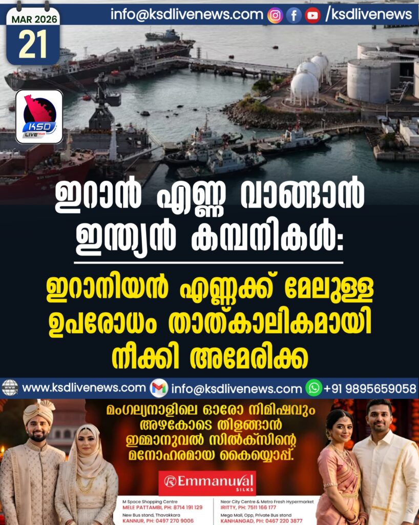 ഇറാൻ എണ്ണ വാങ്ങാൻ ഇന്ത്യൻ കമ്പനികൾ: ഇറാനിയൻ എണ്ണക്ക് മേലുള്ള ഉപരോധം താത്കാലികമായി നീക്കി അമേരിക്ക