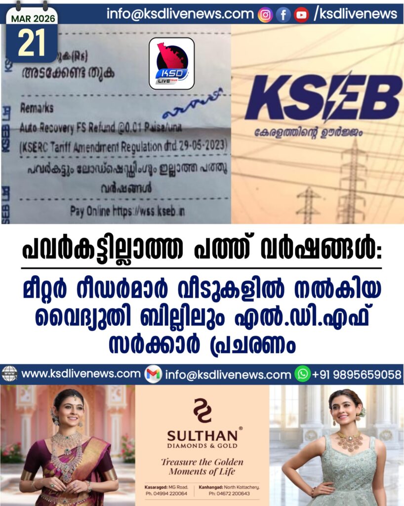 പവർകട്ടില്ലാത്ത പത്ത് വർഷങ്ങൾ: മീറ്റർ റീഡർമാർ വീടുകളിൽ നൽകിയ വൈദ്യുതി ബില്ലിലും എൽ.ഡി.എഫ് സർക്കാർ പ്രചരണം