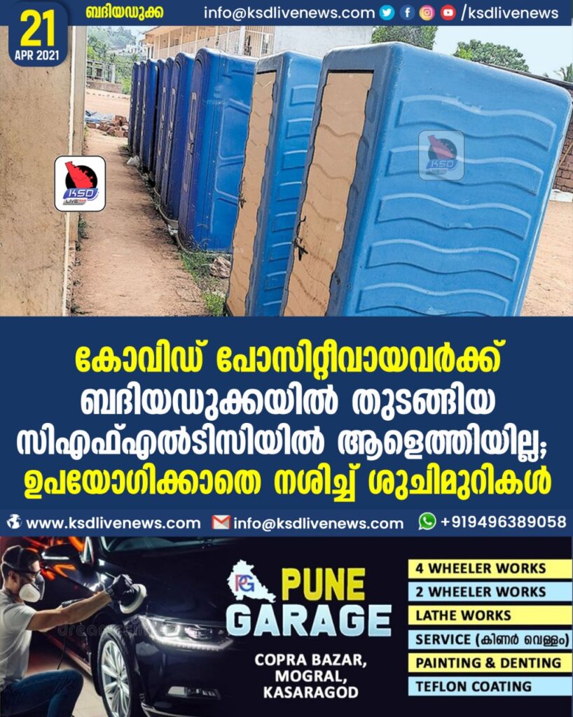 കോവിഡ് പോസിറ്റീവായവർക്ക് ബദിയഡുക്കയിൽ തുടങ്ങിയ സിഎഫ്എൽടിസിയിൽ ആളെത്തിയില്ല; ഉപയോഗിക്കാതെ നശിച്ച് ശുചിമുറികൾ