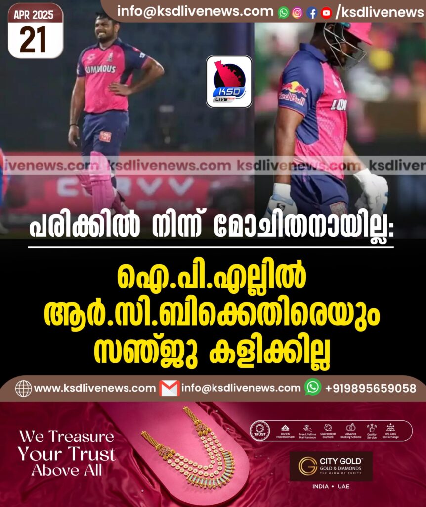 പരിക്കില്‍ നിന്ന് മോചിതനായില്ല: ഐപിഎല്ലില്‍ ആര്‍.സി.ബിക്കെതിരെയും സഞ്ജു കളിക്കില്ല