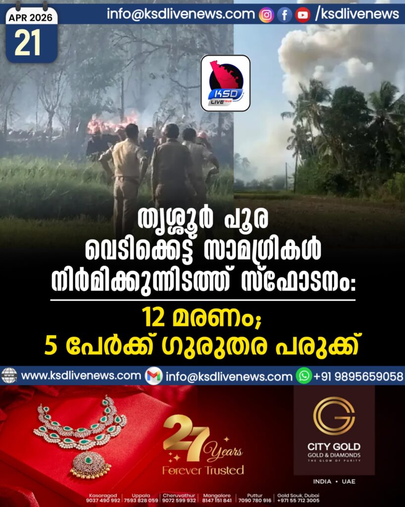 തൃശ്ശൂർ പൂര വെടിക്കെട്ട് സാമഗ്രികൾ നിർമിക്കുന്നിടത്ത് സ്ഫോടനം; 12 മരണം, 5 പേർക്ക് ഗുരുതര പരുക്ക്