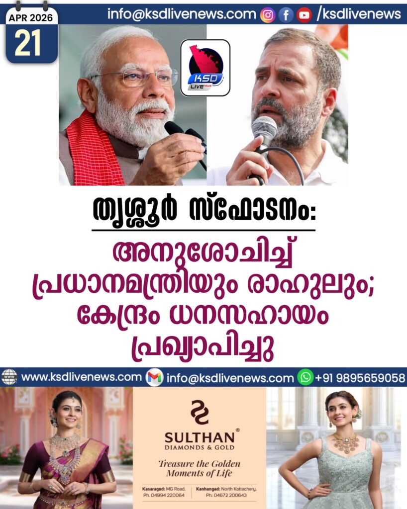 തൃശ്ശൂർ സ്ഫോടനം: അനുശോചിച്ച് പ്രധാനമന്ത്രിയും രാഹുലും, കേന്ദ്രം ധനസഹായം പ്രഖ്യാപിച്ചു