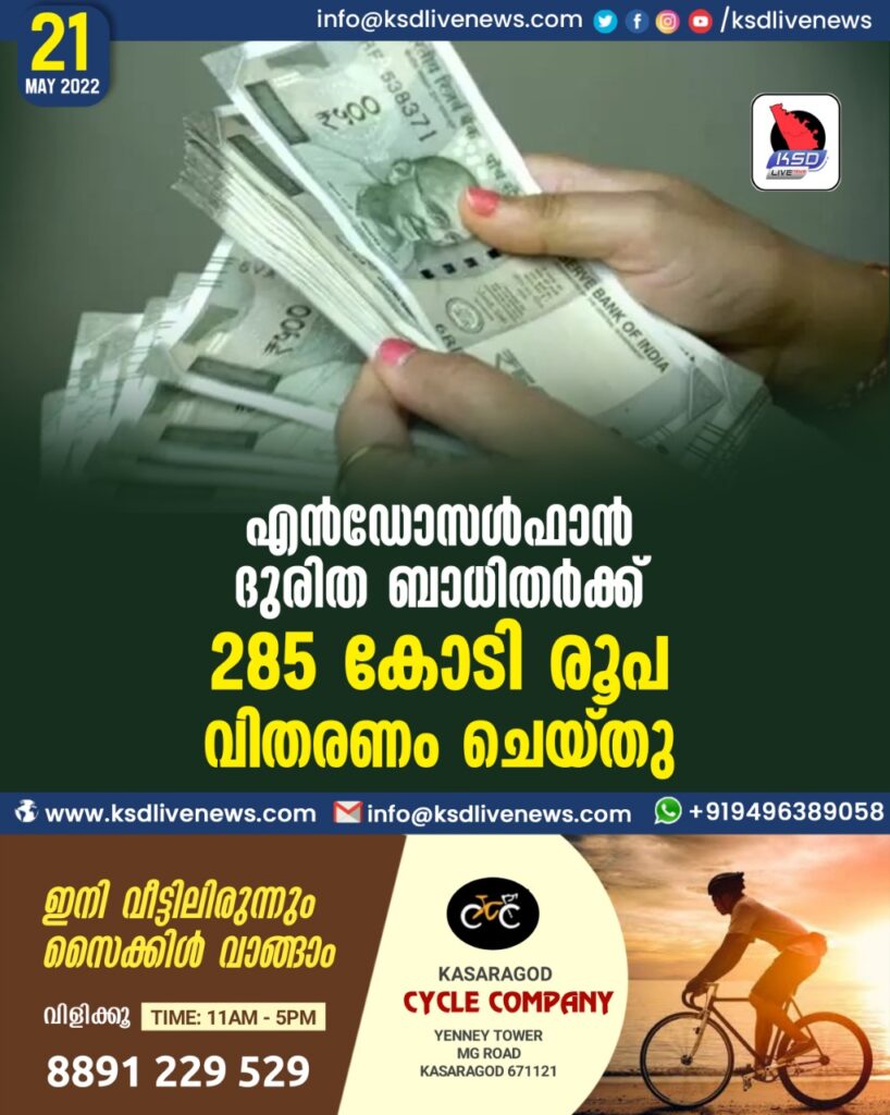 എന്‍ഡോസള്‍ഫാന്‍ ദുരിത ബാധിതര്‍ക്ക് 285 കോടി രൂപ വിതരണം ചെയ്തു
