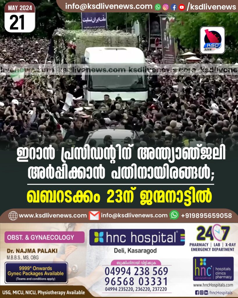 ഇറാൻ പ്രസിഡന്റിന് അന്ത്യാഞ്ജലി അർപ്പിക്കാൻ പതിനായിരങ്ങൾ; ഖബറടക്കം 23ന് ജന്മനാട്ടിൽ