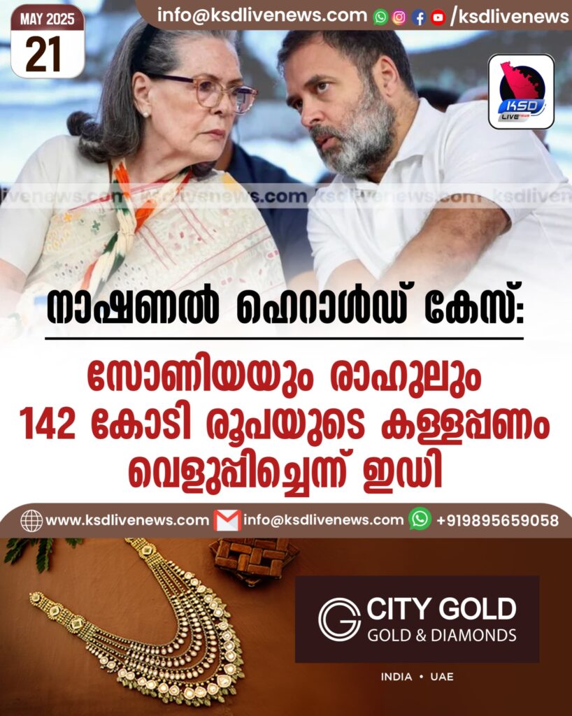 നാഷണൽ ഹെറാൾഡ് കേസ്: സോണിയയും രാഹുലും 142 കോടി രൂപയുടെ കള്ളപ്പണം വെളുപ്പിച്ചെന്ന് ഇഡിl
