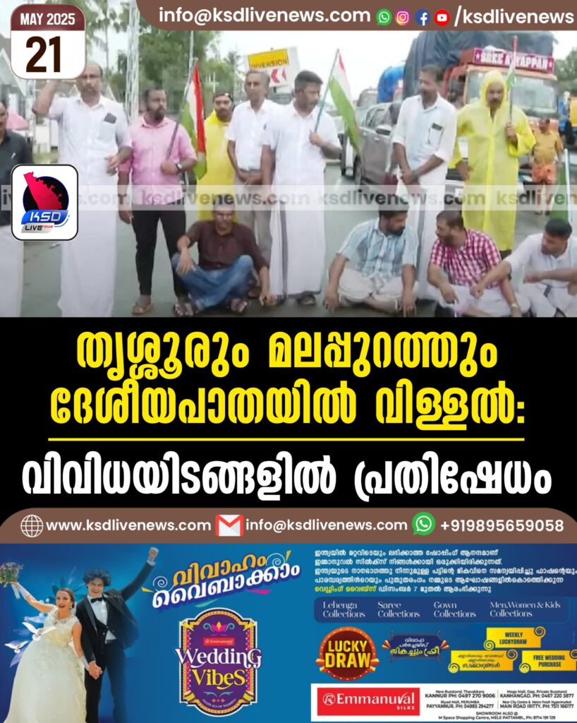 തൃശ്ശൂരും മലപ്പുറത്തും ദേശീയപാതയിൽ വിള്ളൽ; വിവിധയിടങ്ങളിൽ പ്രതിഷേധം
