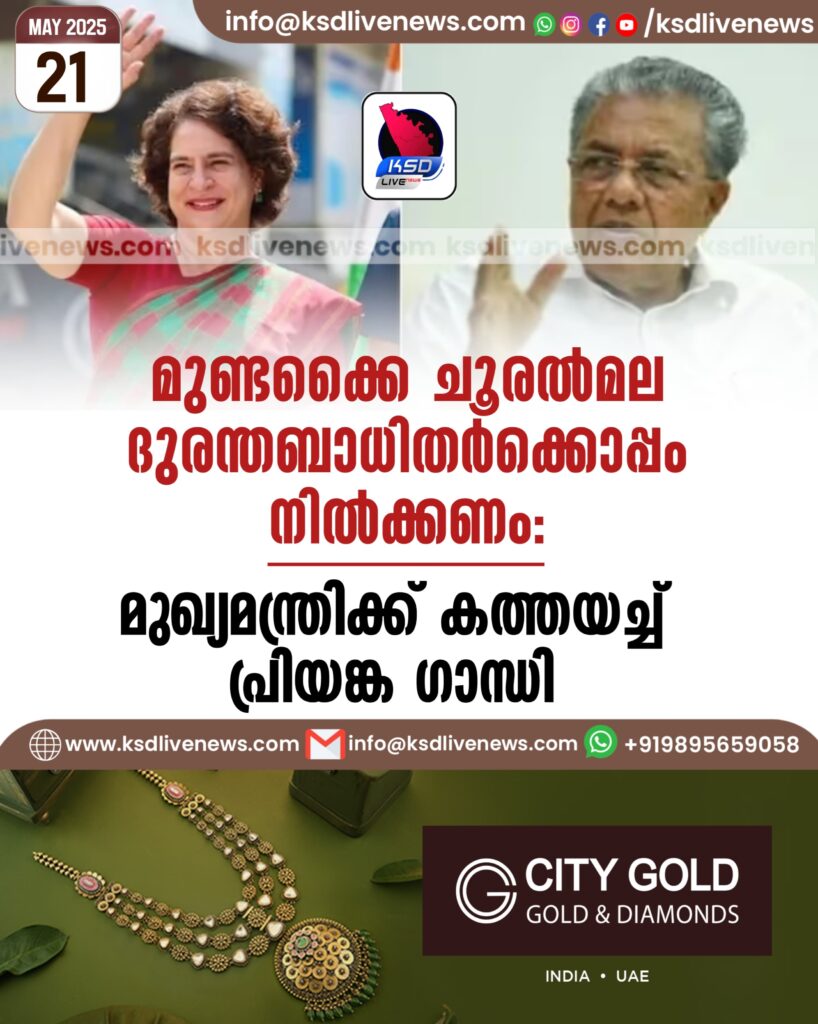 മുണ്ടക്കൈ ചൂരൽമല ദുരന്തബാധിതർക്കൊപ്പം നിൽക്കണം; മുഖ്യമന്ത്രിക്ക് കത്തയച്ച് പ്രിയങ്ക ഗാന്ധി