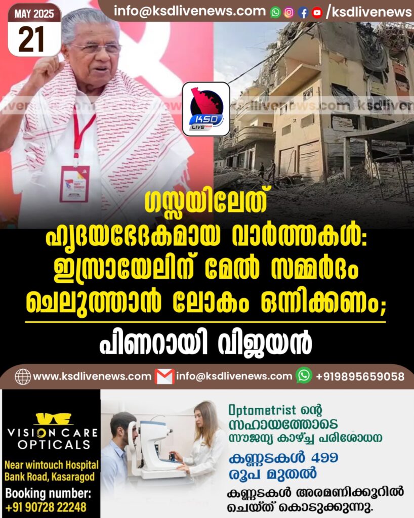 ഗസ്സയിലേത് ഹൃദയഭേദകമായ വാര്ത്തകള്, ഇസ്രായേലിന് മേല് സമ്മര്ദം ചെലുത്താൻ ലോകം ഒന്നിക്കണം’: പിണറായി വിജയൻ