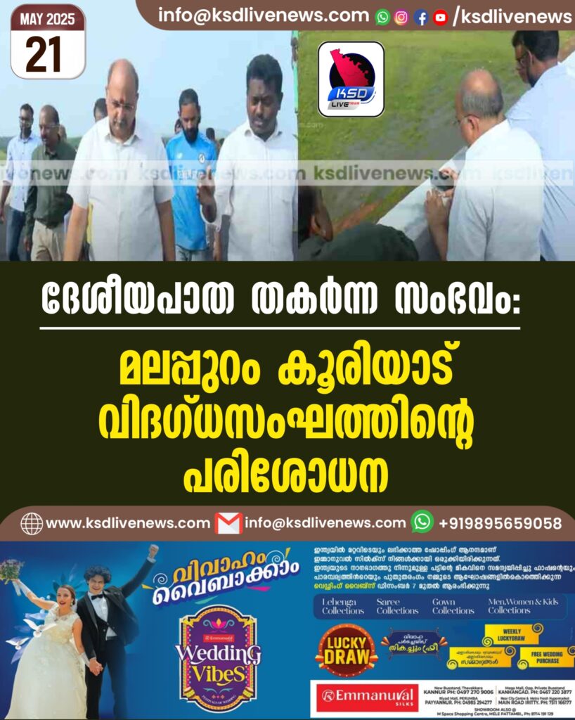 ദേശീയപാത തകർന്ന സംഭവം; മലപ്പുറം കൂരിയാട് വിദഗ്ധസംഘത്തിന്റെ പരിശോധന