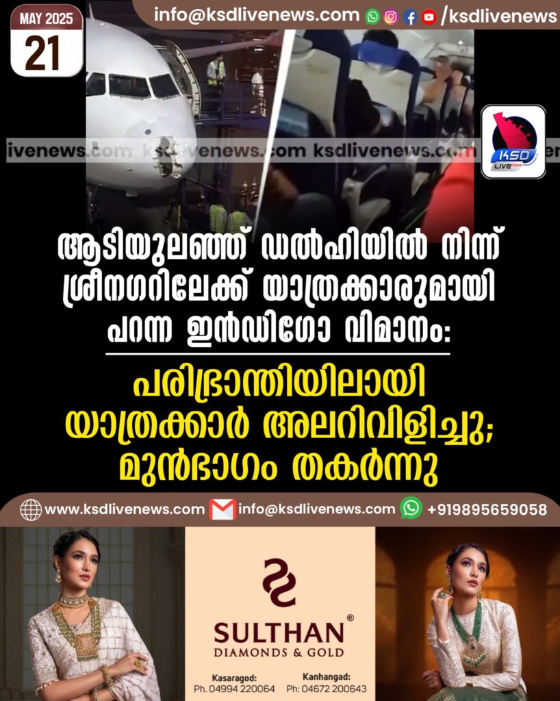 ആടിയുലഞ്ഞ് ഡല്‍ഹിയില്‍ നിന്ന് ശ്രീനഗറിലേക്ക് യാത്രക്കാരുമായി പറന്ന ഇന്‍ഡിഗോ വിമാനം, പരിഭ്രാന്തിയിലായി യാത്രക്കാര്‍ അലറിവിളിച്ചു; മുന്‍ഭാഗം തകര്‍ന്നു/വീഡിയോ