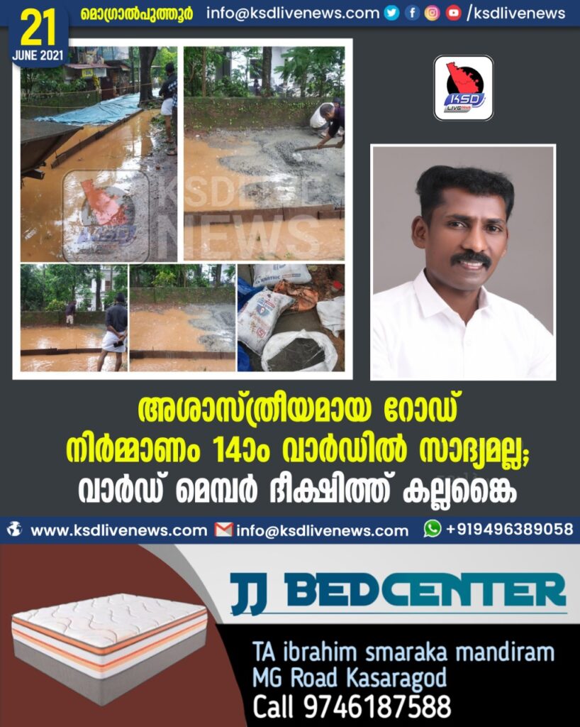 കഴിഞ്ഞ വർഷം മൊഗ്രാൽ പുത്തൂർ ടൗണിൽ നിന്നും ഗവൺമെന്റ് സ്ക്കൂൾളിലേക്ക് പോകുന്ന കോൺഗ്രീറ്റ് റോഡ് മഴക്കാലത്ത് ഇന്ത്യൻ യൂണിയൻ ലീഗിന്റെ വാർഡ് മെമ്പറുടെ സാനിധ്യത്തിൽ അശാസ്ത്രീയമായ് നിർമ്മിച്ചത് കൊണ്ടാണ് ഈ ഒരു വർഷം പൂർത്തി ആകുന്നതിന് മുമ്പ് തകർന്നതെന്നും അത് പോലെ അശാസ്ത്രീയമായ രീതിയിൽ കല്ലങ്കൈ,അർജാൽ റോഡ് തത്ക്കാലം നിർമ്മിക്കാൻ നിർവ്വാഹമില്ലെന്നും വാർഡ് മെമ്പർ ദീക്ഷിത്ത് വ്യക്തമാക്കി.