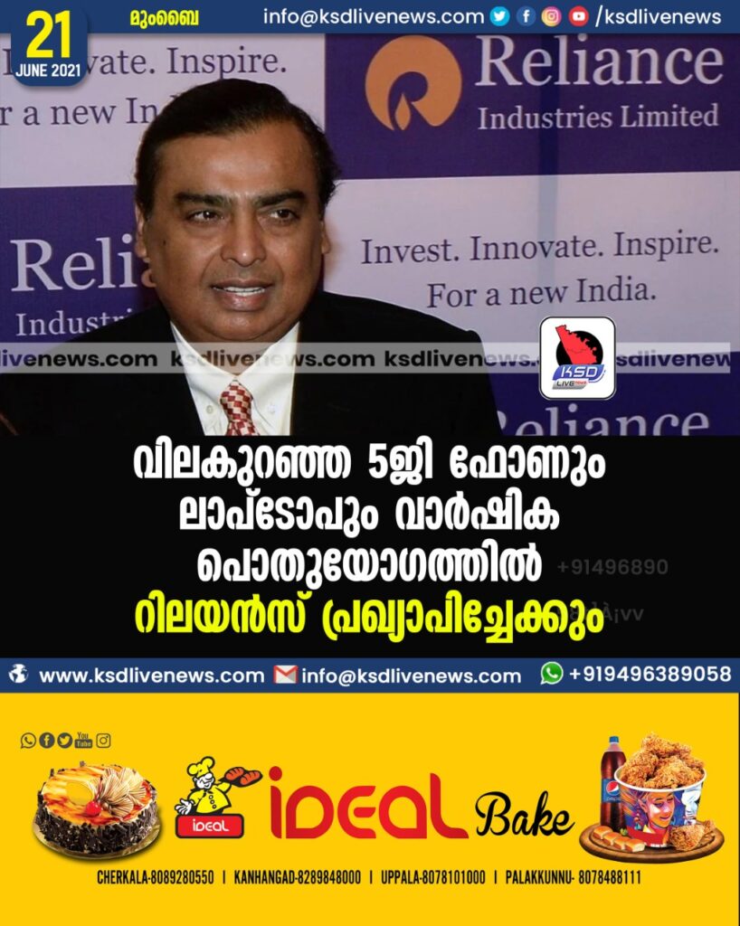 വിലകുറഞ്ഞ 5ജി ഫോണും ലാപ്‌ടോപും വാർഷിക പൊതുയോഗത്തിൽ റിലയൻസ് പ്രഖ്യാപിച്ചേക്കും