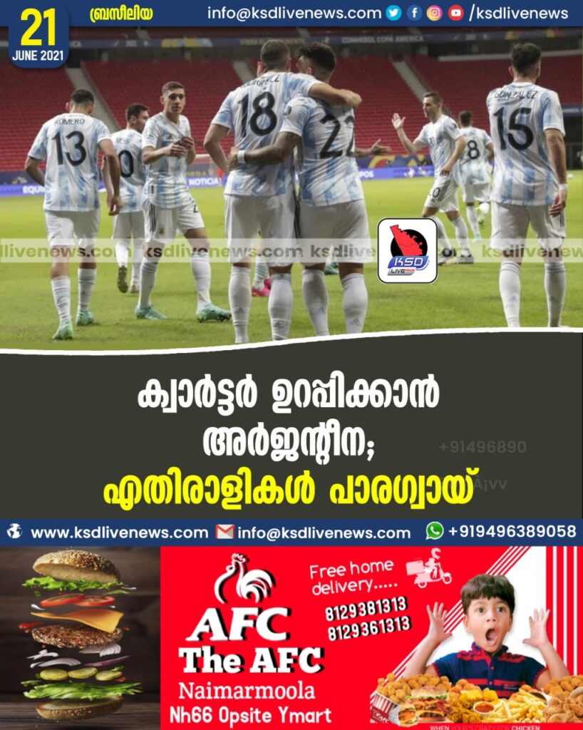 ക്വാര്ട്ടര് ഉറപ്പിക്കാന് അര്ജന്റീന; എതിരാളികള് പാരഗ്വായ്