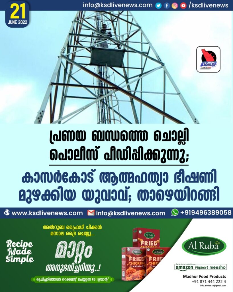 പ്രണയ ബന്ധത്തെ ചൊല്ലി പൊലീസ് പീഡിപ്പിക്കുന്നു; കാസര്‍കോട് ആത്മഹത്യാ ഭീഷണി മുഴക്കിയ യുവാവ്; താഴെയിറങ്ങി