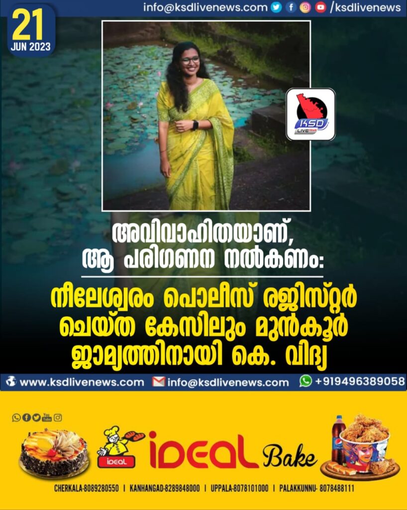 അവിവാഹിതയാണ്, ആ പരിഗണന നൽകണം: നീലേശ്വരം പൊലീസ് രജിസ്റ്റർ ചെയ്ത കേസിലും മുൻകൂർ ജാമ്യത്തിനായി കെ. വിദ്യ