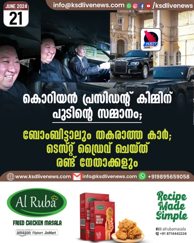 കൊറിയൻ പ്രസിഡന്റ് കിമ്മിന് പുടിന്റെ സമ്മാനം; ബോംബിട്ടാലും തകരാത്ത കാര്; ടെസ്റ്റ് ഡ്രൈവ് ചെയ്ത് രണ്ട് നേതാക്കളും| Video
