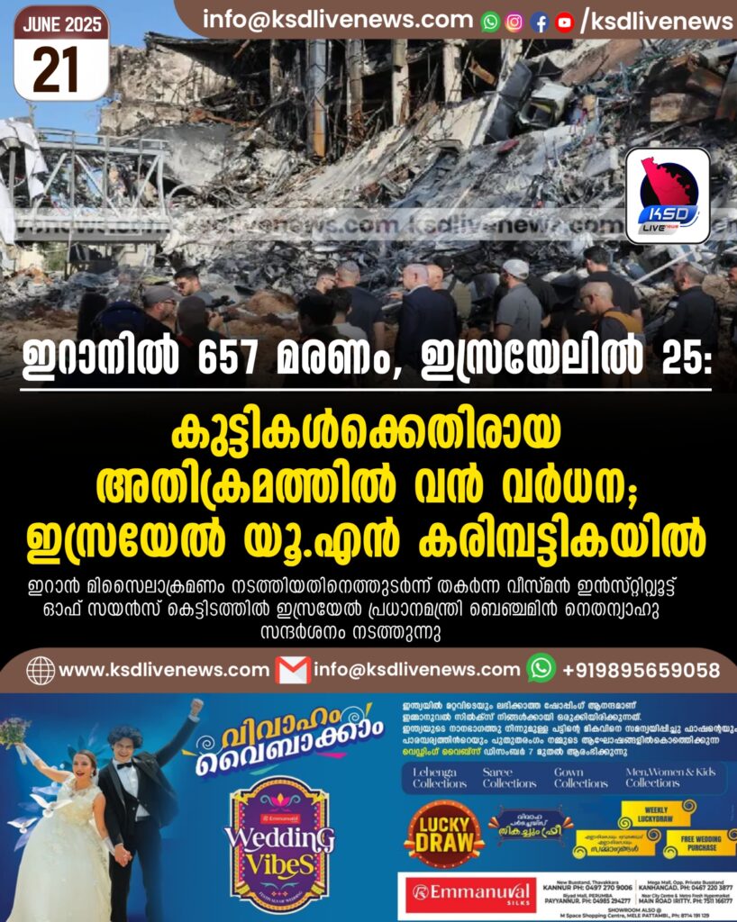 ഇറാനിൽ 657 മരണം, ഇസ്രയേലിൽ 25: കുട്ടികൾക്കെതിരായ അതിക്രമത്തിൽ വൻവർധന, ഇസ്രയേൽ UN കരിമ്പട്ടികയിൽ