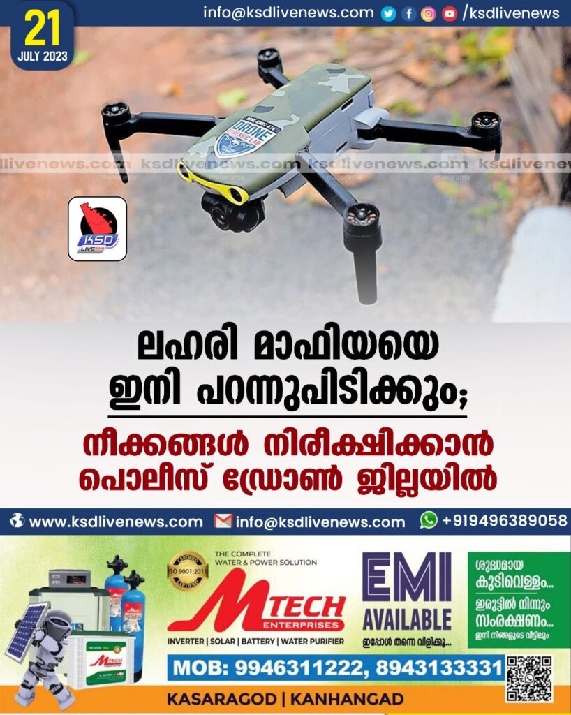 ലഹരി മാഫിയയെ ഇനി പറന്നുപിടിക്കും; നീക്കങ്ങൾ നിരീക്ഷിക്കാൻ പൊലീസ് ഡ്രോൺ ജില്ലയിൽ