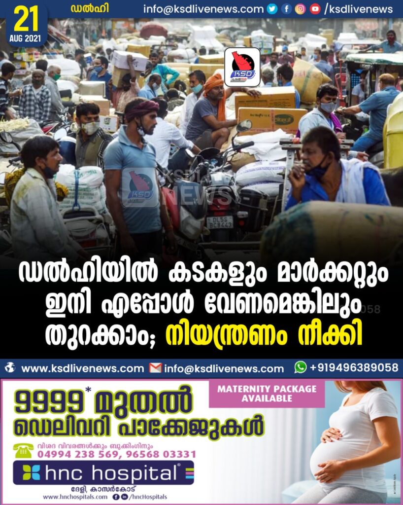 ഡല്ഹിയില് കടകളും മാര്ക്കറ്റും ഇനി എപ്പോള് വേണമെങ്കിലും തുറക്കാം; നിയന്ത്രണം നീക്കി