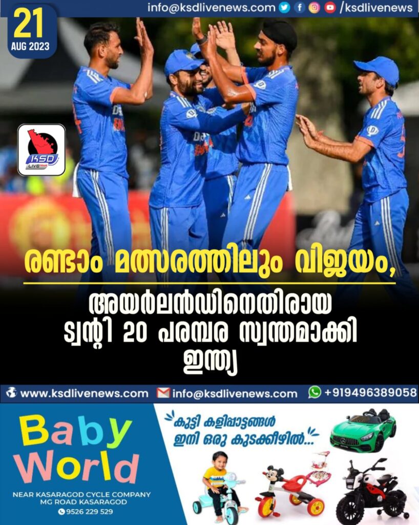 രണ്ടാം മത്സരത്തിലും വിജയം, അയര്ലന്ഡിനെതിരായ ട്വന്റി 20 പരമ്പര സ്വന്തമാക്കി ഇന്ത്യ