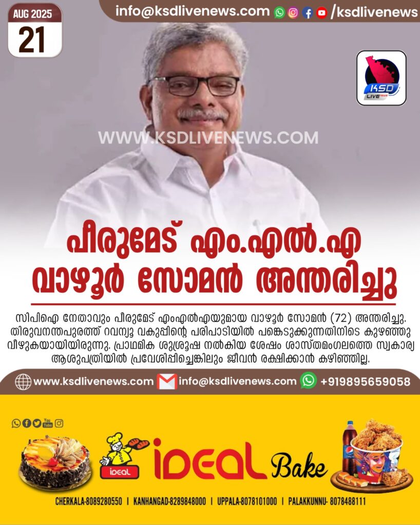 പീരുമേട് എംഎൽഎ വാഴൂർ സോമൻ അന്തരിച്ചു