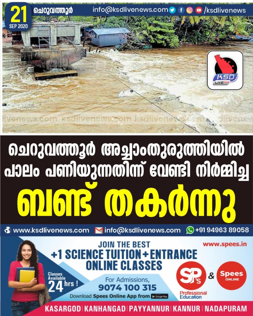 ചെറുവത്തൂർ അച്ചാംതുരുത്തിയിൽ പാലം പണിയുന്നതിന്ന് വേണ്ടി നിർമ്മിച്ച ബണ്ട് തകർന്നു