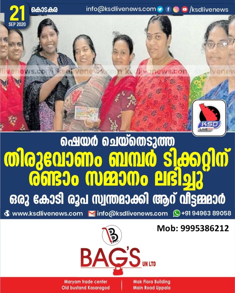 ഷെയർ ചെയ്തെടുത്ത തിരുവോണം ബമ്പർ ടിക്കറ്റിന് രണ്ടാം സമ്മാനം ലഭിച്ചു ; ഒരു കോടി രൂപ സ്വന്തമാക്കി ആറ് വീട്ടമ്മമാര്