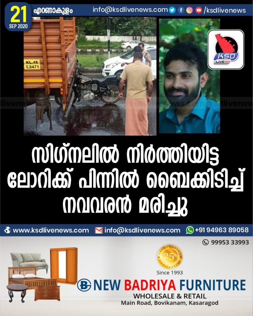 സിഗ്നലിൽ നിർത്തിയിട്ട ലോറിക്ക് പിന്നിൽ ബൈക്കിടിച്ച് നവവരൻ മരിച്ചു